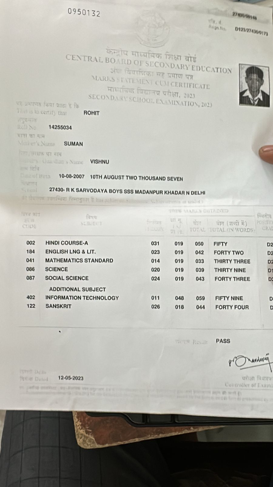 | Exam | Full Marks | Pass Marks | Marks Obtained |